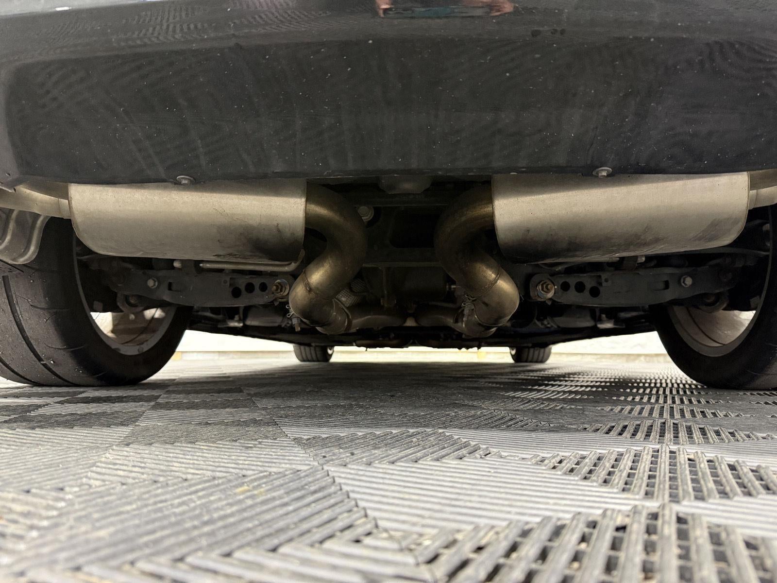 - Exhaust, dual-outlet stainless-steel with bright tips