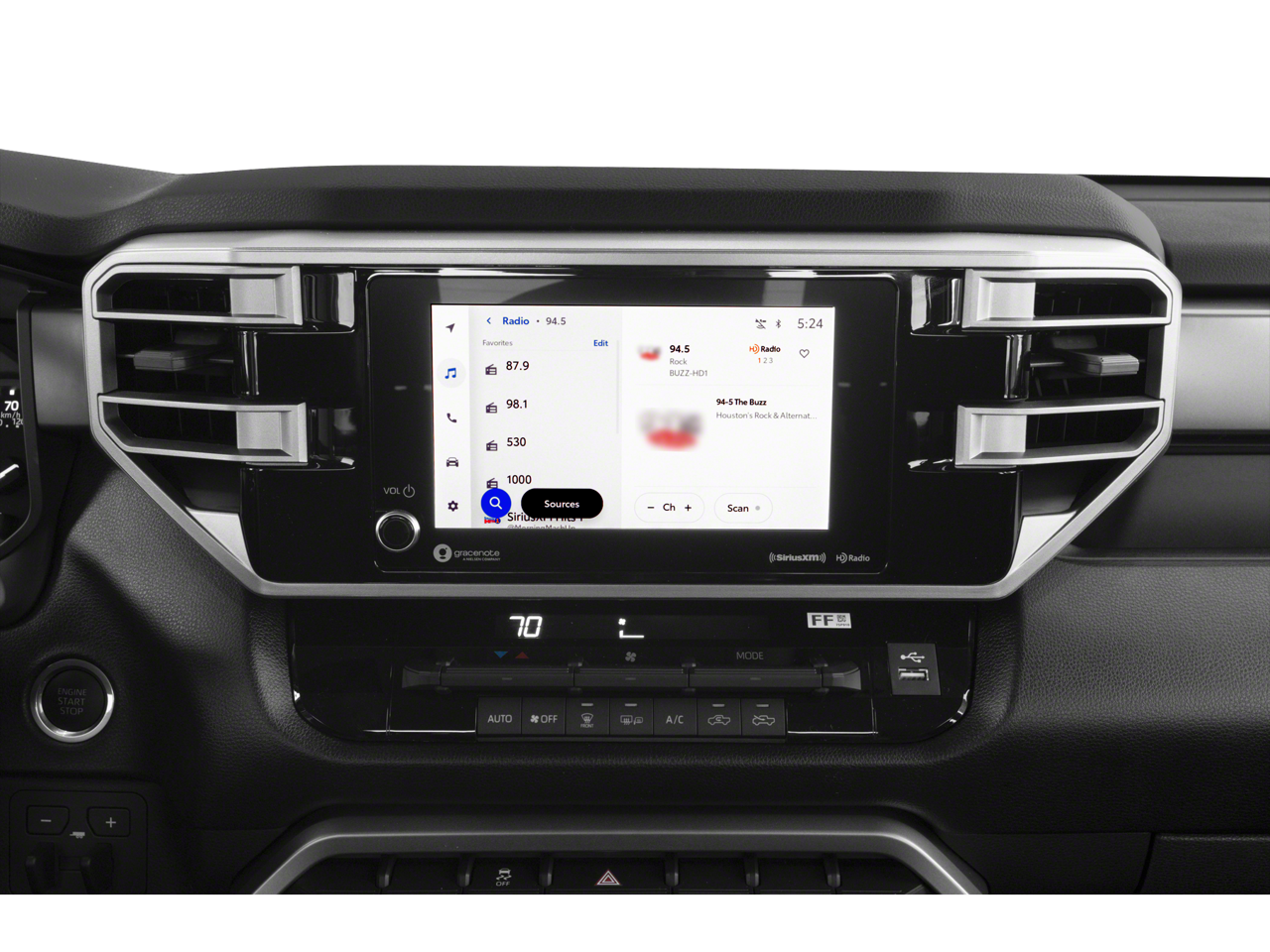 - Includes 14-in. touchscreen, 9 speakers, wireless Apple CarPlay and Android Auto, Amazon Alexa, SiriusXM satellite radio service with 3-month trial subscription, Toyota Connected Services (includes Safety Connect with 1-year trial, Service Connect with 3-year trial, Drive Connect with 1-year trial, Remote Connect with 1-year trial, and Wi-Fi Connect with up to 3 GB within 1-month trial), 400W/120V rear power outlet, 400W/120V bed-mounted power outlet, and LED bed lights.