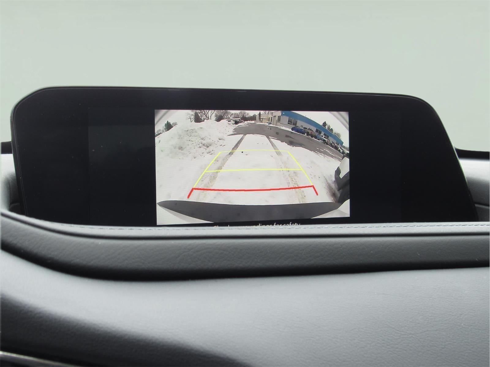 - The vehicle is equipped with a camera that displays an image of the area behind the vehicle on an interior display.