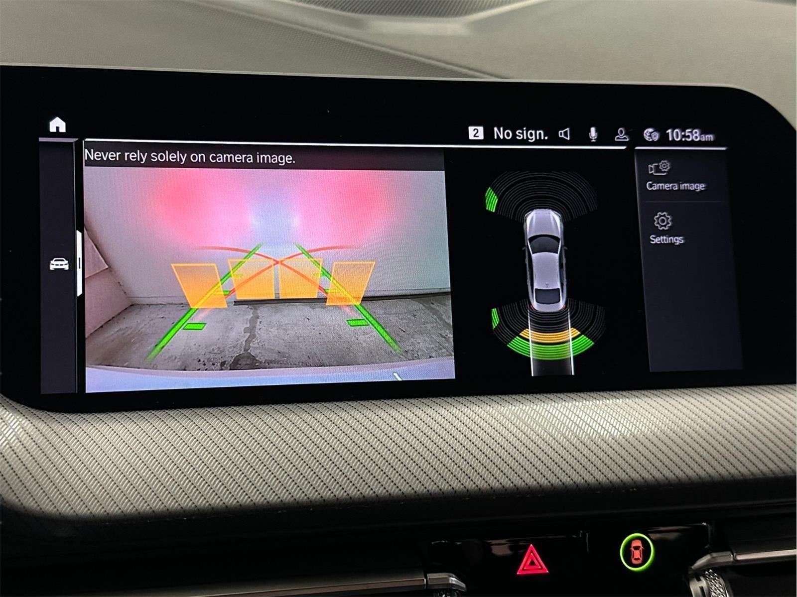 - The vehicle is equipped with a camera that displays an image of the area behind the vehicle on an interior display.