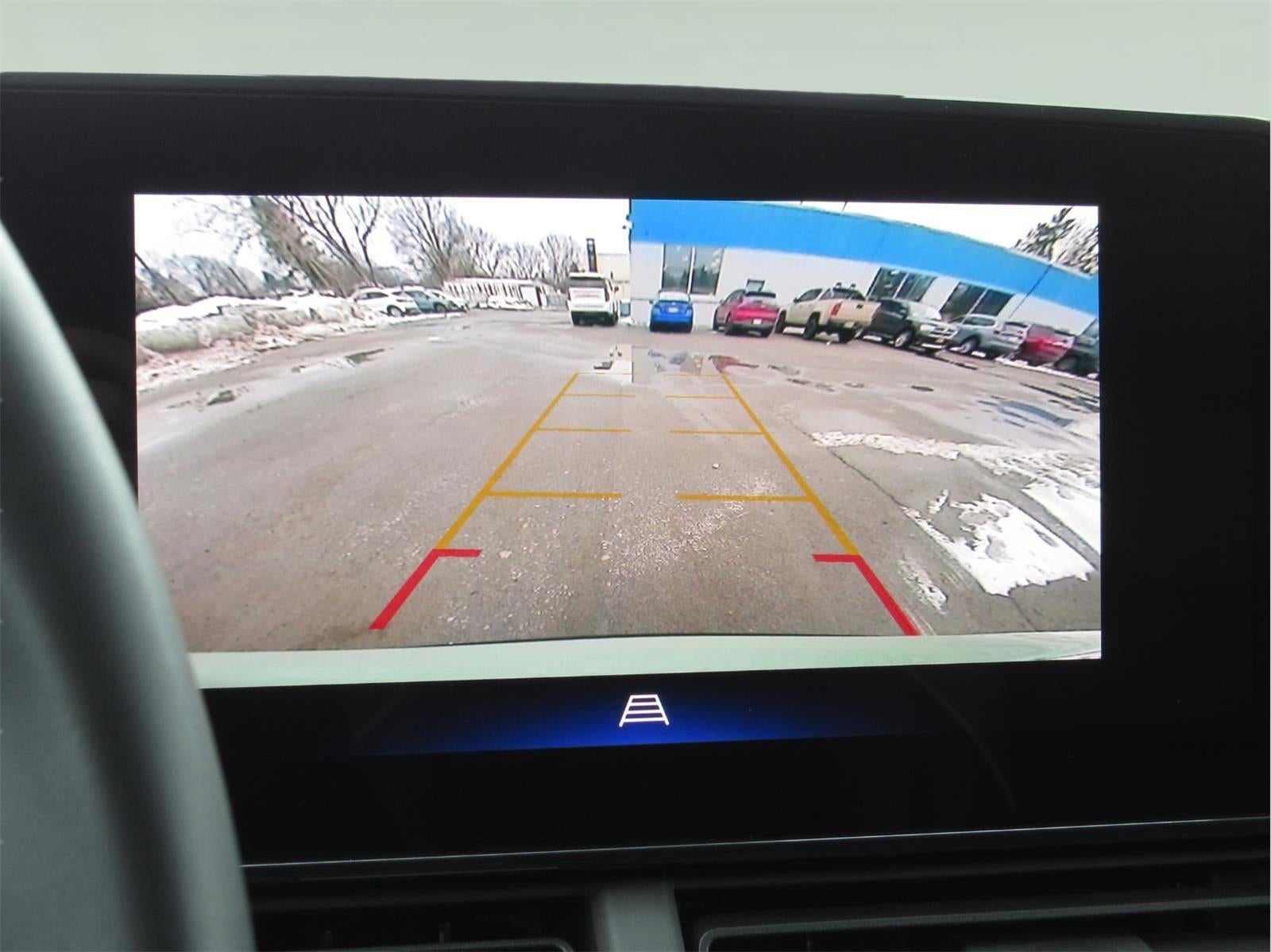 - The vehicle is equipped with a camera that displays an image of the area behind the vehicle on an interior display.