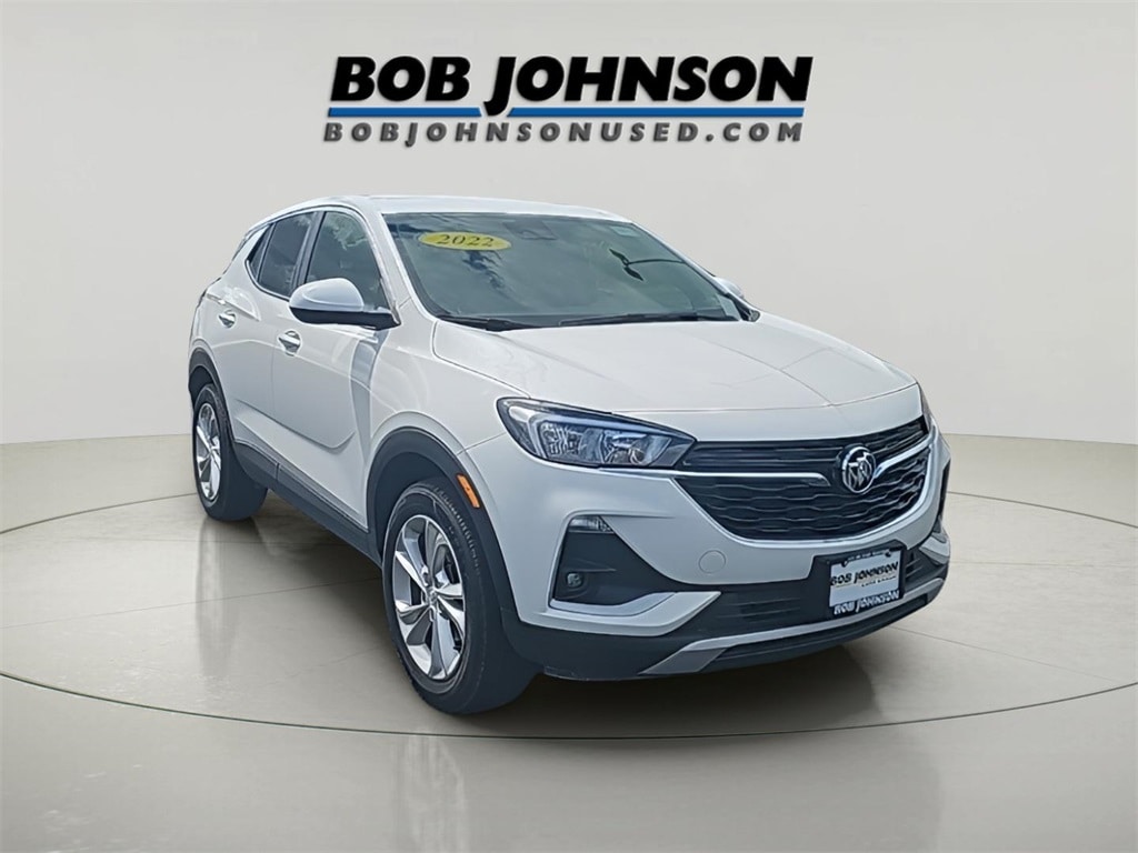 “Bob Johnson has got your ride” At Bob Johnson Auto Group we use a third party provider for our Market Value Pricing (MVP) that is constantly polling over 70,000 advertised used vehicles hourly to ensure our customers the most competitive price. Our managers adjust our prices daily accordingly. 8-Way Power Driver Seat Adjuster, Cloth w/Leatherette Seat Trim, Cold Weather Comfort Package, Front fog lights, Fully automatic headlights, Heated Driver & Front Passenger Seats, Radio: 8" Diagonal Buick Infotainment System, Remote Vehicle Starter System, SiriusXM Radio, Steering wheel mounted audio controls, Wheels: 18" Bright Silver Painted Aluminum, Wireless Apple CarPlay/Wireless Android Auto. 2022 Buick Encore GX Preferred AWD WITH HEATED SEATS & REMOTE START! AWD 9-Speed Automatic ECOTEC 1.3L Turbo Summit White
